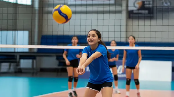 Entrenamiento técnico y táctico de voleibol combinado con charlas prácticas de nutrición deportiva, prevención de lesiones y psicología del deporte, enfocado en el desarrollo integral y competitivo de jóvenes voleibolistas